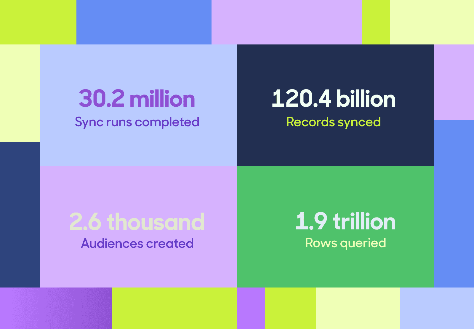 We didn't have enough space in the above infographic to show all the commas in those stats—but we helped our customers query 1,923,349,425,886 rows of data this year. That means we passed roughly 3.7 million rows of data through our sync engine every single minute 🤯.
