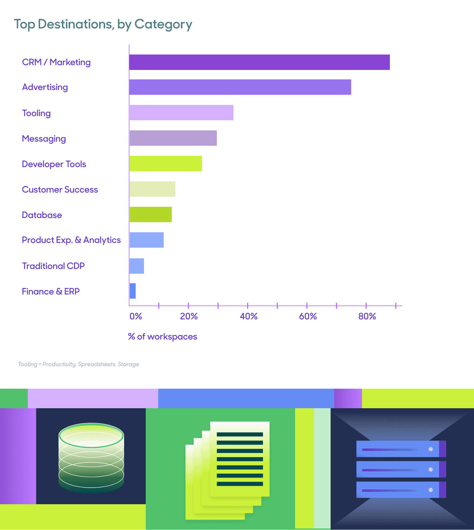 Below is a look at the relative popularity of various sources and destinations based on the number of workspaces syncing data to and from them.
