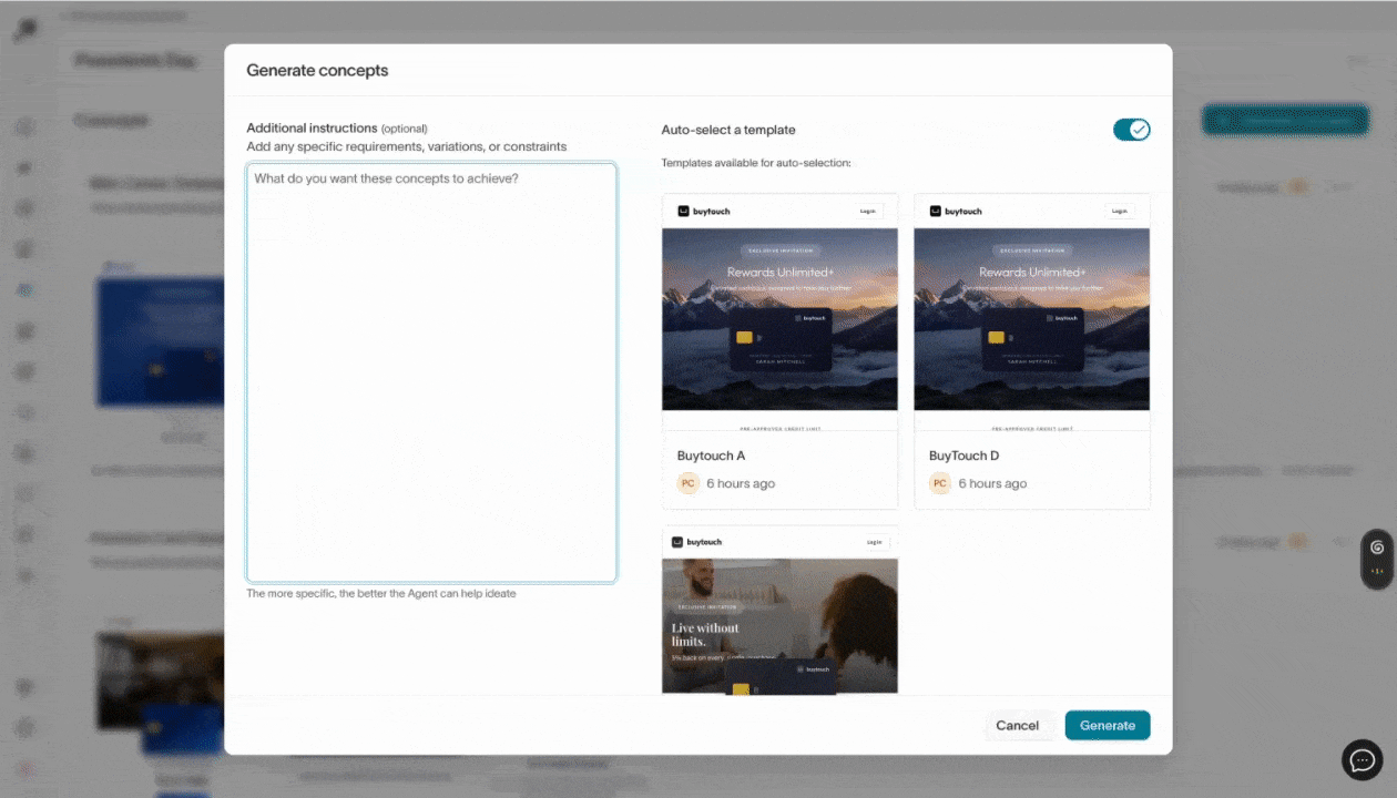 What comes back is a set of on-brand campaign concepts, already assembled, with clear reasoning behind each one. The marketer reviews that output, makes changes and refinements with the help of AI, and decides what goes live.