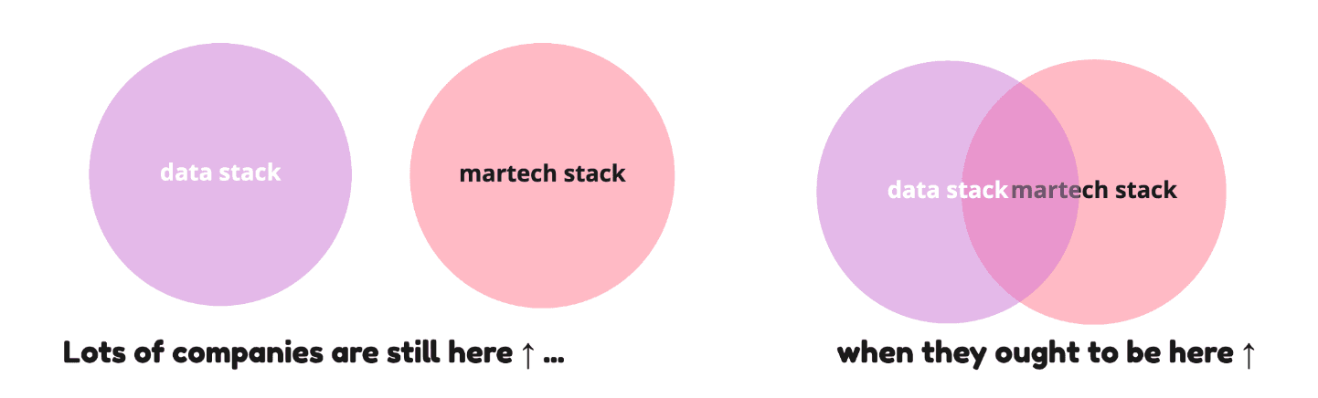 Given how advanced the data capabilities are of CDPs and similar marketing platforms, it’s absurd to be talking about a data stack and a separate martech stack. After all, these tech stacks are simply a means to an end: delivering a better customer experience and ultimately driving revenue.