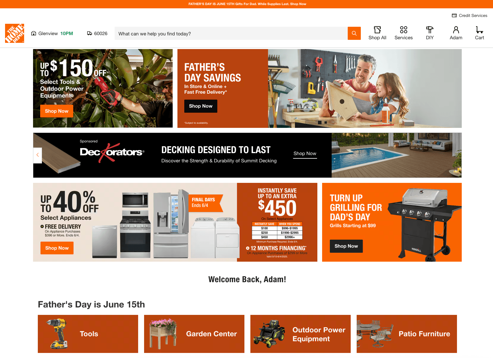 So, after decades of collecting data and spending millions on marketing suites, I see the same thing as every other visitor, but with a “hello Adam” message! Does this make me feel like a valued customer? Does this make me want to shop more often at Home Depot? Probably not.